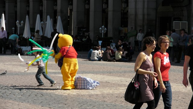 Poor lost Pooh, accosting random children in Madrid.