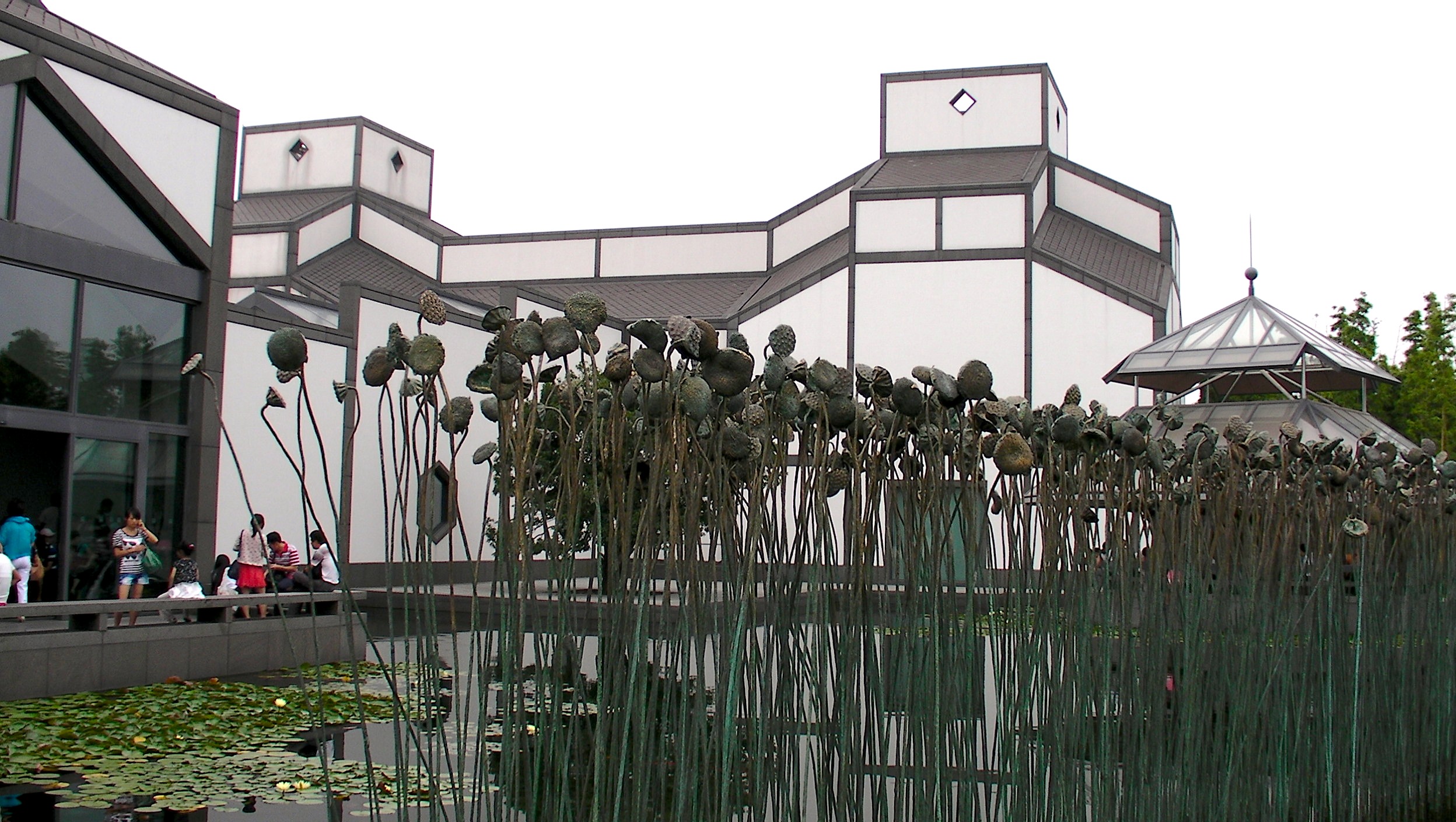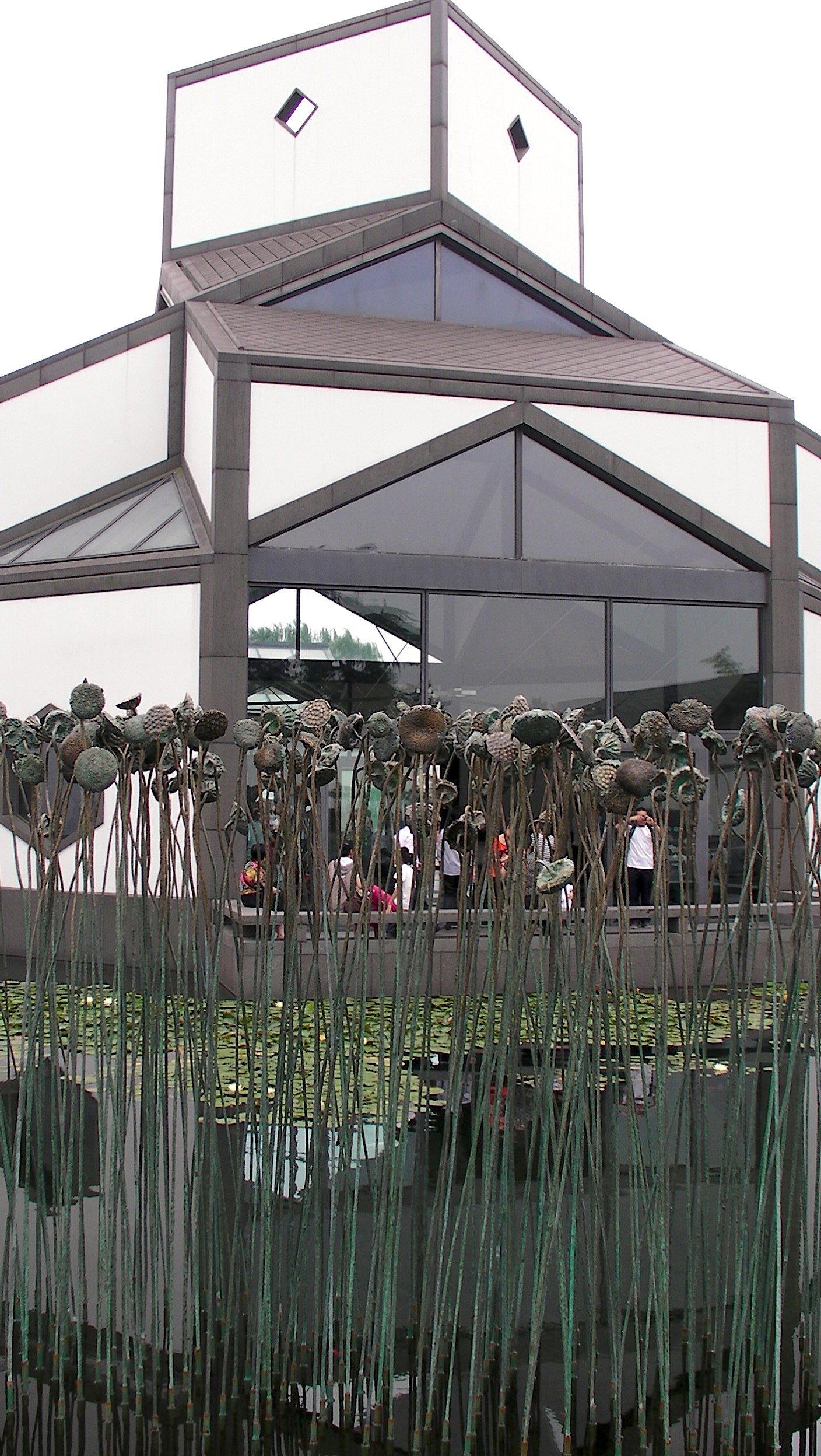 What otherwise really struck me as memorable about the museum was the landscape design of its gardens. Pei had rendered Modernist interpretations on integral aspects of a traditional Chinese garden – the pavilion, the carp pond, rock sculptures and lotus ponds. A row of lotus stems turned out to be made out of steel. Large pieces of slate and granite had been arranged against a white wall to evoke mountains in traditional Chinese landscape painting. In the meantime, there were still the obligatory proliferation of lotus plants and strategically-placed bamboo groves.