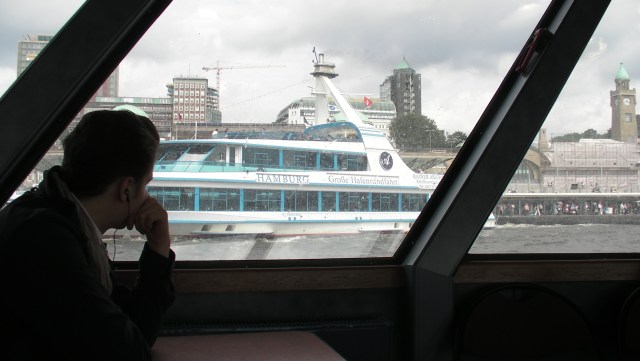 A ferry on the mighty Elbe River, heading into Hamburg