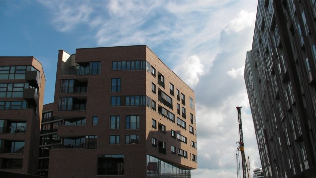 Office / Residential Space – View of office and residential buildings in the adjacent Am Sandtorpark / Grasbrook quarter. These were newer than in Am Santorkai / Dalmannkai, but did not have a similar waterfront view.  The quarter was being marketed more as a “green” mixed-used residential and office precinct centred around a park. Again, this could be a view onto Singapore, Shanghai, or Nairobi.