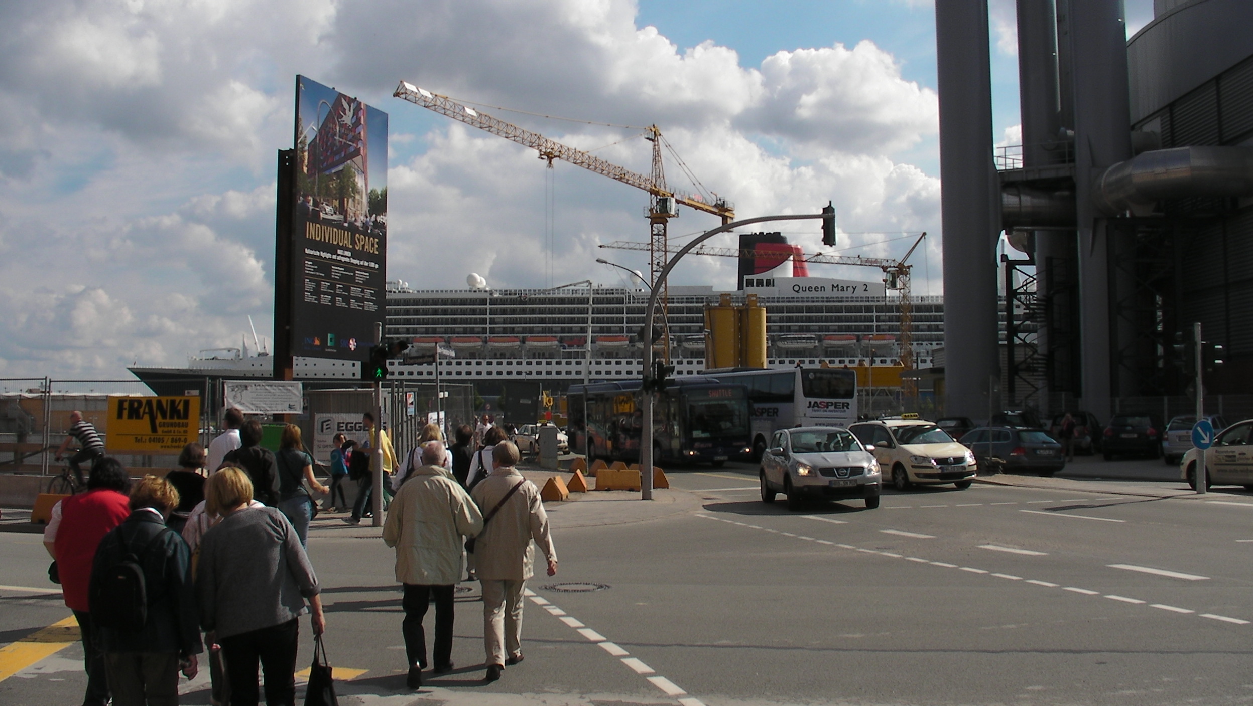 Cruise Center – Also in the Strandkai quarter is the Cruise Center, where the Queen Mary II, a transatlantic (New York – Hamburg) cruise ship is moored.  The Cruise Centre will add an “international flair” to the precinct, apparently. Though “international” is probably a byword for placeless, faceless, functional.