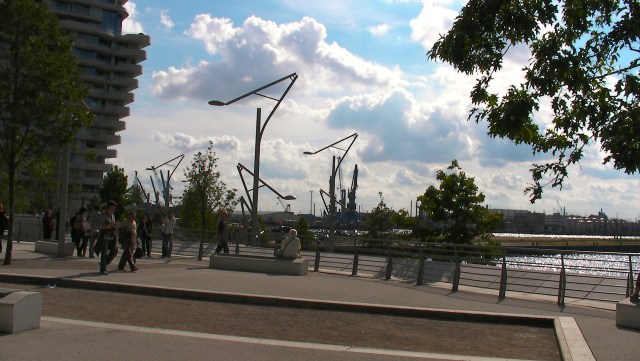 Strandkai – A quick glimpse of the adjacent quarter, Strandkai.  Not quite completed yet. To the left is one of the first buildings constructed, the Marco Polo Towers – which apparently caused some controversy for its architecture when it first appeared. It is also famously occupied by some of the most wealthy residents of Hamburg.