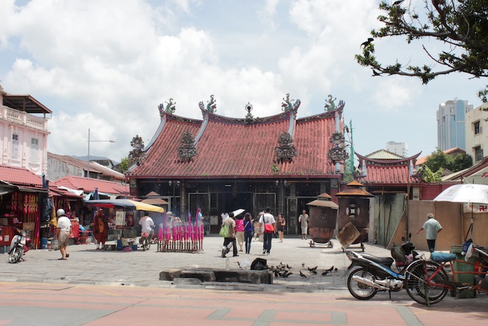 Copper-hued roof tiles of the Goddess of Mercy Temple, on Jalan Masjid Kapitan Keling, also known as the “Street of Harmony.”