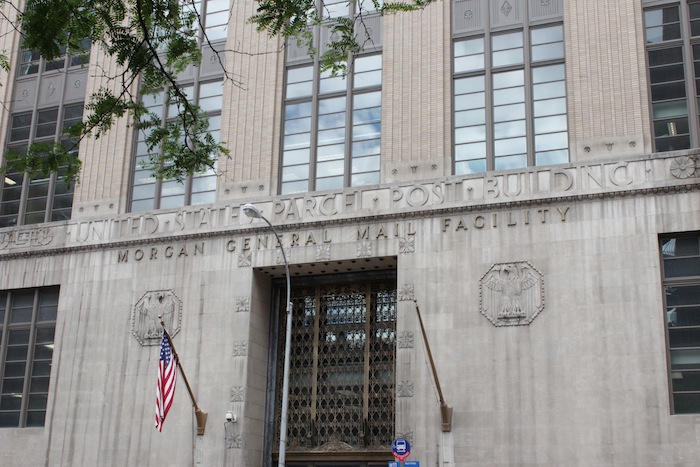 8 – Art Deco façade of the United States Parcel Post Building, with cartouches of the Bald Eagle.
