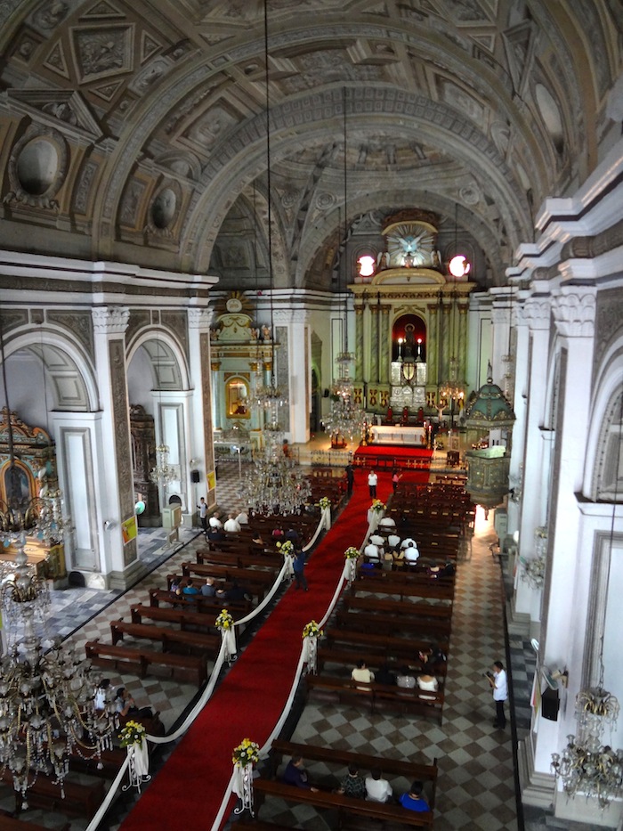 The journey ends at a wedding, about to take place within the San Agustin Church of Manila.