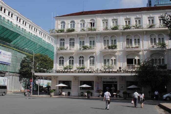 The legendary Hotel Continental Saigon, beside the to-be-unveiled new Eden Center, thankfully designed to blend in with the colonial architecture of its surroundings.