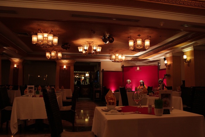 Traditional music ensemble in an empty Cyclo Café restaurant.