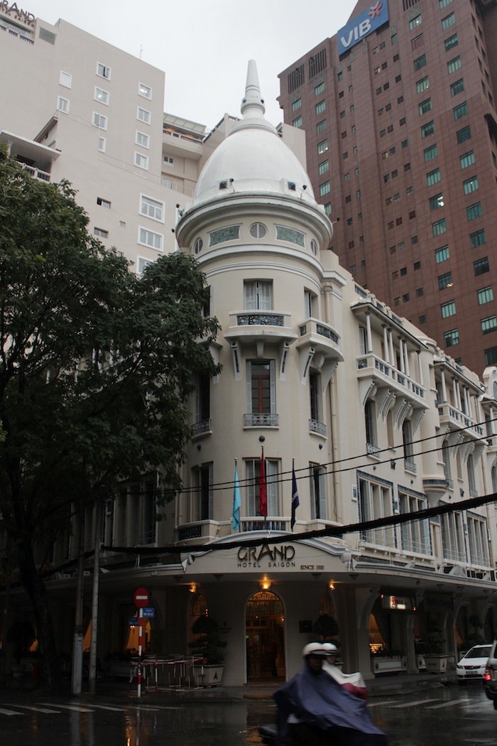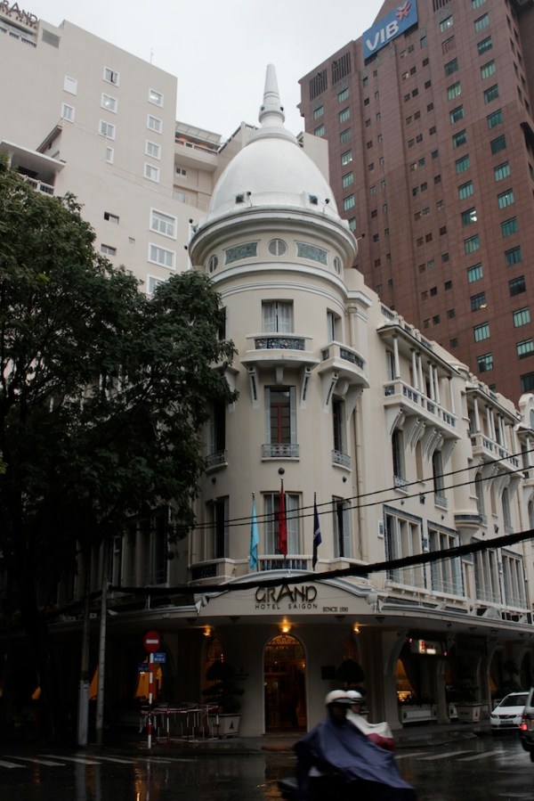 The Grand Hotel (1930), the third most famous hotel on the street, after the Continental and the Majestic. It was once known as the Saigon Palace Hotel. The art deco façade has been retained, but the building is now topped by a multi-storey tower.