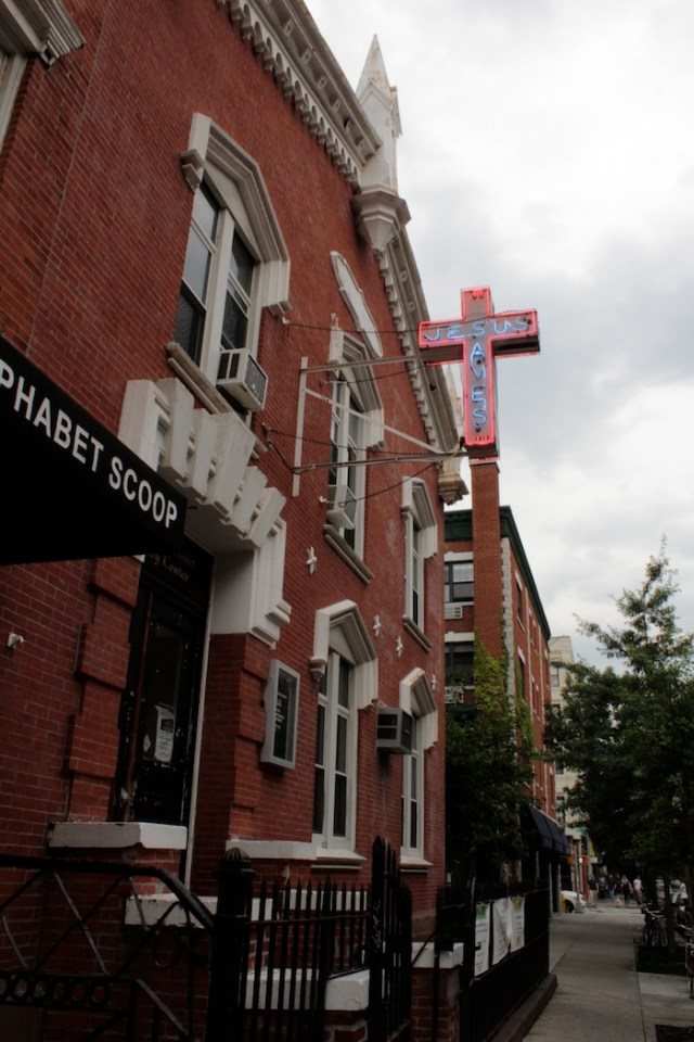 This atmosphere of community and piety is hardly surprising since the population in this area used ot be largely Hispanis of Puerto Rican descent, who are also known as “Nuyoricans” – “New York” plus “Puerto Rico.” Avenue C is not Avenue C here, but Loisaida Avenue, “Loisaida” being Nuyorican for Lower East Side, which hustorically, this area belonged to, but no longer does today. ce Russian Baptist, but now Evangelical.