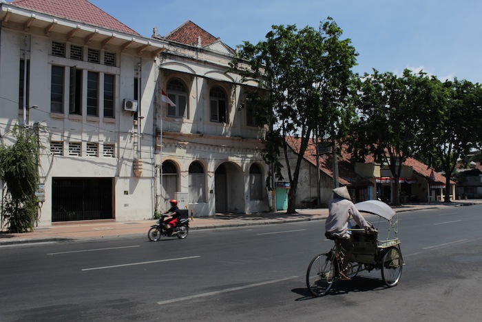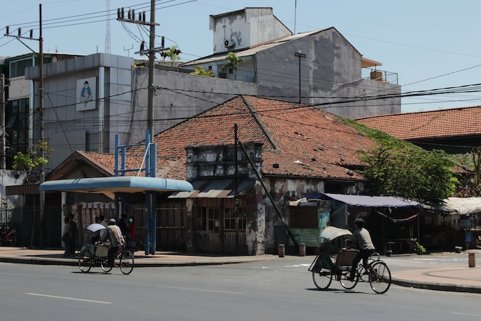 The weekend I was here in Surabaya, the streets were comparatively less congested, on account of the Idul-fitri holidays. And so I was, rather fortuitously, able to capture these fleeting moments of stillness in the urban fabric, when the past seeps into the present: a becak, and a stately old building, and voila (!) I have a scene straight out of the 19th century.