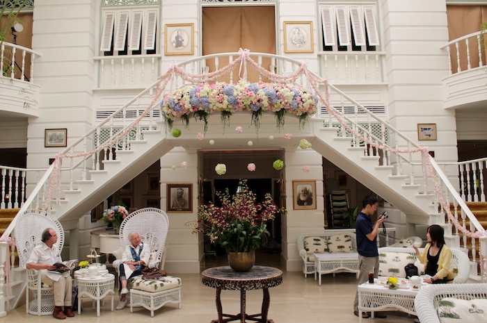 While guests in the 19th century would have arrived by river and docked right in front of the now-Author’s Wing, today, guests arrive primarily by land at the Hotel’s Main Lobby. There, the hotel doorman, dressed like a Thai imperial guard, opens the taxi door, and welcomes one with the utmost warmth and grace. The lobby of the hotel is a grand palatial space, with soaring double-volume ceilings and a bright airy interior. The best time to enter the hotel – according to its excellent Companion Guide– is in the evenings, when a string quartet plays in the lobby and the vast lounge area is abuzz with activity. While I unfortunately arrived in the morning, I did manage to snatch a feel of this magical and festive atmosphere the evening of my arrival, when I returned from a day of shooting in the European quarter.