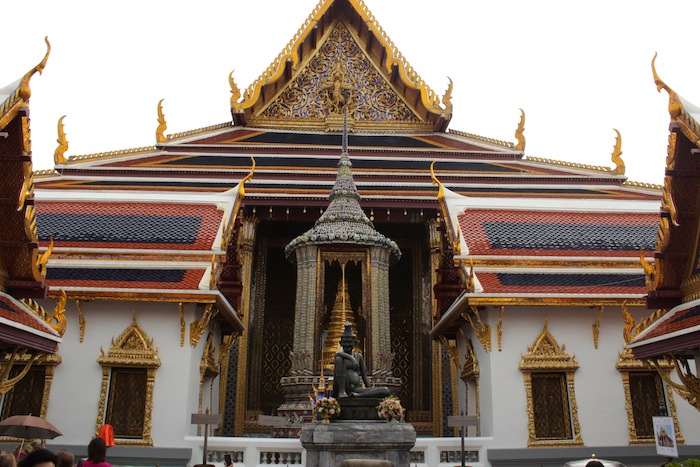 Fig. 3 – The first thing one sees upon entering the complex: the Temple itself, fronted by the statue of a monk, who was the father of Thai medicine. The statue was installed by Rama III.