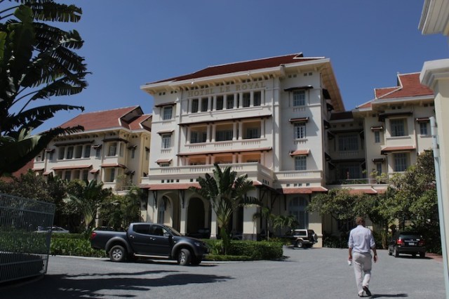 While in Phnom Penh, stay at the Hotel Le Royal, so goes conventional wisdom. And so I did. Situated in the heart of the city’s colonial quarter to the north, Le Royal has led a charmed life. Opened in 1929 by the French colonial authorities, alongside sister hotels in Siem Reap and Hué, it very quickly established itself on the Grand Tour circuit – Phnom Penh being a convenient stopover en route to the ruins of Angkor – as the establishment of repute in all Cambodia. Designed by Ernest Hébrard, also the city’s urban planner, it reflects an original (at the time) and self-consciously French Colonial architectural style that embellished European facades with trimmings like sloping tile roofs, shuttered windows and large, airy corridors adapted for the tropical climate. The hotel’s link to royalty was firm from its very inception: King Sisowath Monivong himself graced the hotel’s opening reception, while Sihanouk was a frequent visitor. Hollywood and literary royalty too patronised the hotel when they passed through the city: the likes of Charlie Chaplin, who stopped by for a single night in 1936, for example; and the usual suspects in the literary (particularly the Francophone literary) world – Somerset Maugham, Pierre Loti, André Malraux[1] and so on.