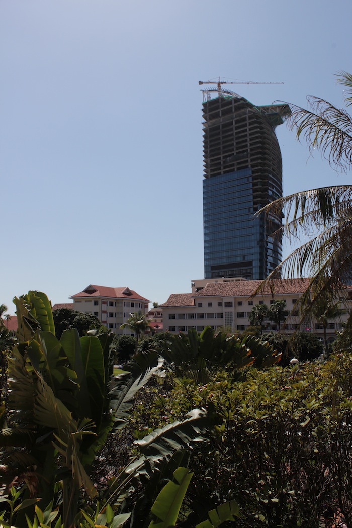 Back at Hotel Le Royal: the view from my balcony onto rue 92 and 96. In the distance is the sign of the times: the Vattanac Building, one of Phnom Penh’s spanking new skyscrapers.