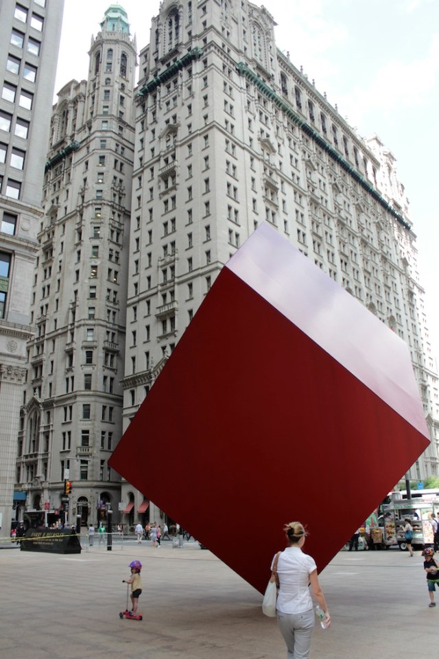 12 – Cube (1968) by Isamu Noguchi, sits just before the Marine Midland Building. Behind it is the US Realty Building (1906) by Francis H. Kimball, in a Gothic design.