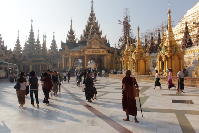 Buddhism, however, remains at the heart of Burmese culture and identity. The Buddhism practiced here, as with most of continental Southeast Asia and Sri Lanka, is Theravada Buddhism infused with traces of Brahmanism. At the Burmese national symbol – the magnificent and somewhat surreal Shwedagon Pagoda in Yangon, I saw the usual array of Buddhist icons alongside statues of celestial beings and mythical beasts from the Yama Zatdaw, the Burmese incarnation of the Ramayana. I also got to witness just how deep the religion runs in Burmese everyday life. Civilians far outnumbered the monks worshipping at the Pagoda, and I observed many of the former building karma by slipping alms to latter, sitting quietly at prayer amidst the forest of smaller pagodas and pavilion-temples that dotted the entire complex.