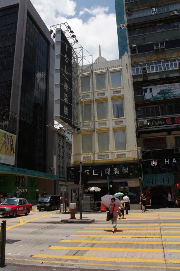 Turn of the century building wedged in amongst its contemporaries, Kowloon.