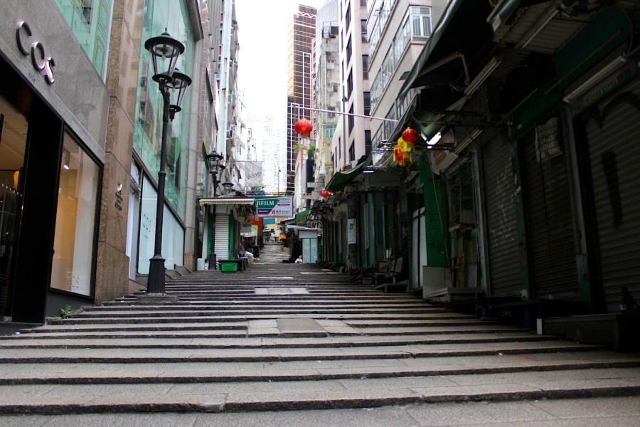 Pottinger Street, known for its “Stone slab stairway” and once a major shopping street in the 1920s-30s.