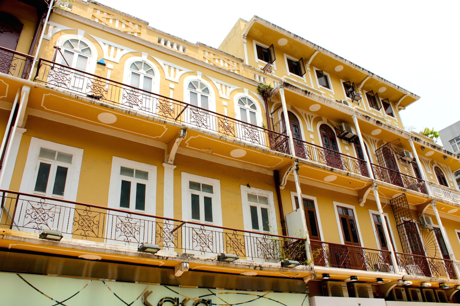 Elaborate commercial and residential facades along the Avenida de Almeida Ribeiro – the Champs-Elysees, Oxford Street or Orchard Road of Macau.