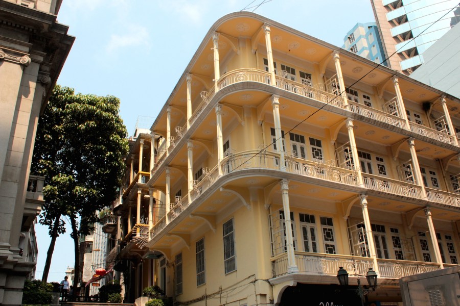 Elaborate commercial and residential facades along the Avenida de Almeida Ribeiro – the Champs-Elysees, Oxford Street or Orchard Road of Macau.