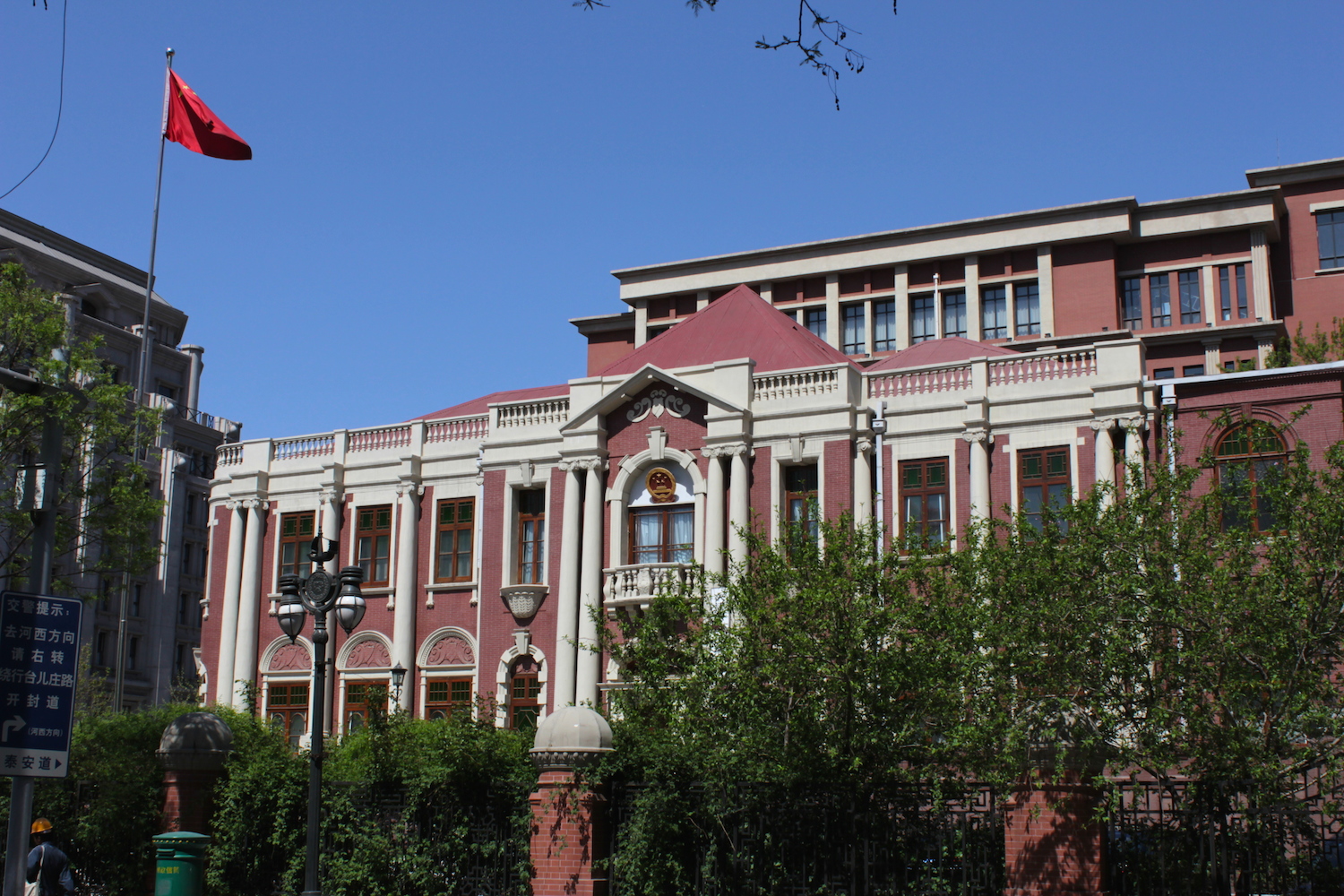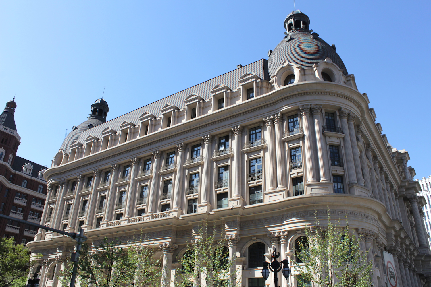 A de facto American concession was administered from 1869, as part of the British concession. Victoria Street became Woodrow Wilson Street here, and there is a clear distinction between the buildings here and in the British Concession. These are starkly commercial, bourgeois/beaux-arts and monumental.