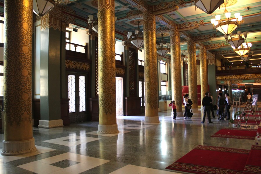 The over-the-top imperial-style lobby of the Grand Hotel Beijing (the 1954 wing).