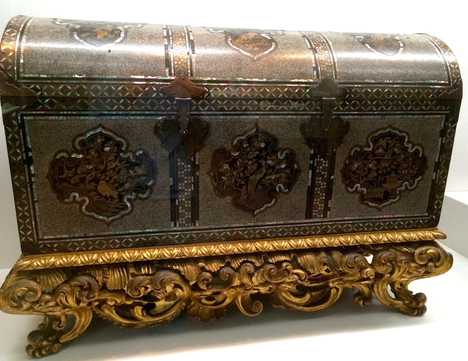 But goods and ideas passed freely. For two centuries, the Dutch continued the very profitable nanban 南蛮 trade (or “Southern Barbarian Trade”) first established by the Portuguese. From the sole exit point of Dejima, Nagasaki, Japanese luxury items like porcelain and most notably, lacquer, were commissioned by and exported to European markets. These rare nanban trade pieces still exist today, scattered in a range of museums and private collections in Japan and Europe.