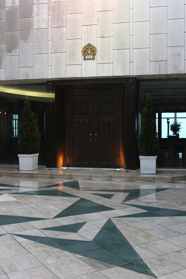 The logo of the hotel, seen at the top-floor viewing gallery of the Tower Wing.
