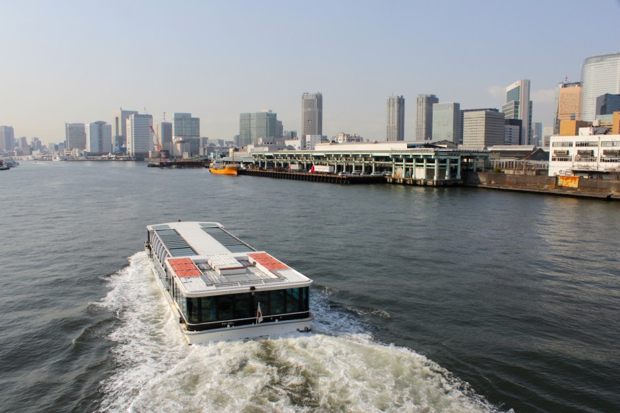 The Sumida River and the Tsukiji Fish Market (right) today.
