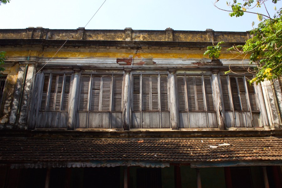 Historic Tamil house facades, Vysial Street. The street, also known as Rue Calve Subraya Chetty, is named after the gentleman who established the Calve College.