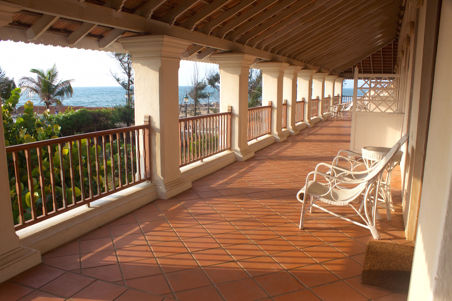 The endless verandah on the second floor, overlooking the sea.