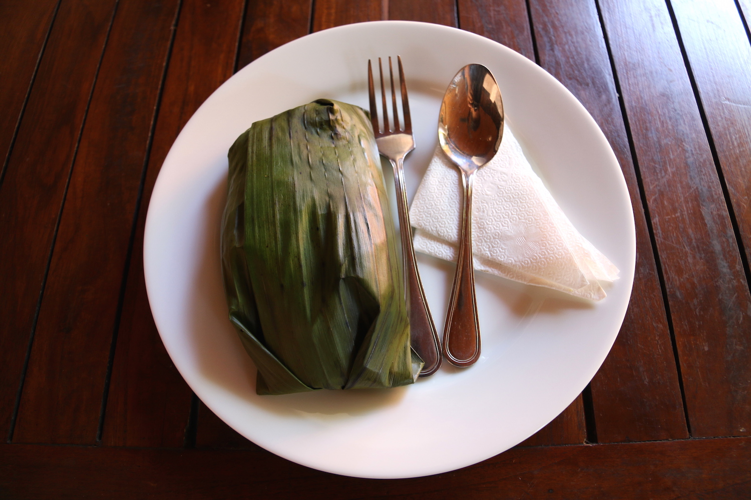 Lampreis is served at the cafe of the Dutch Burgher Union. The dish is cooked in a banana leaf.