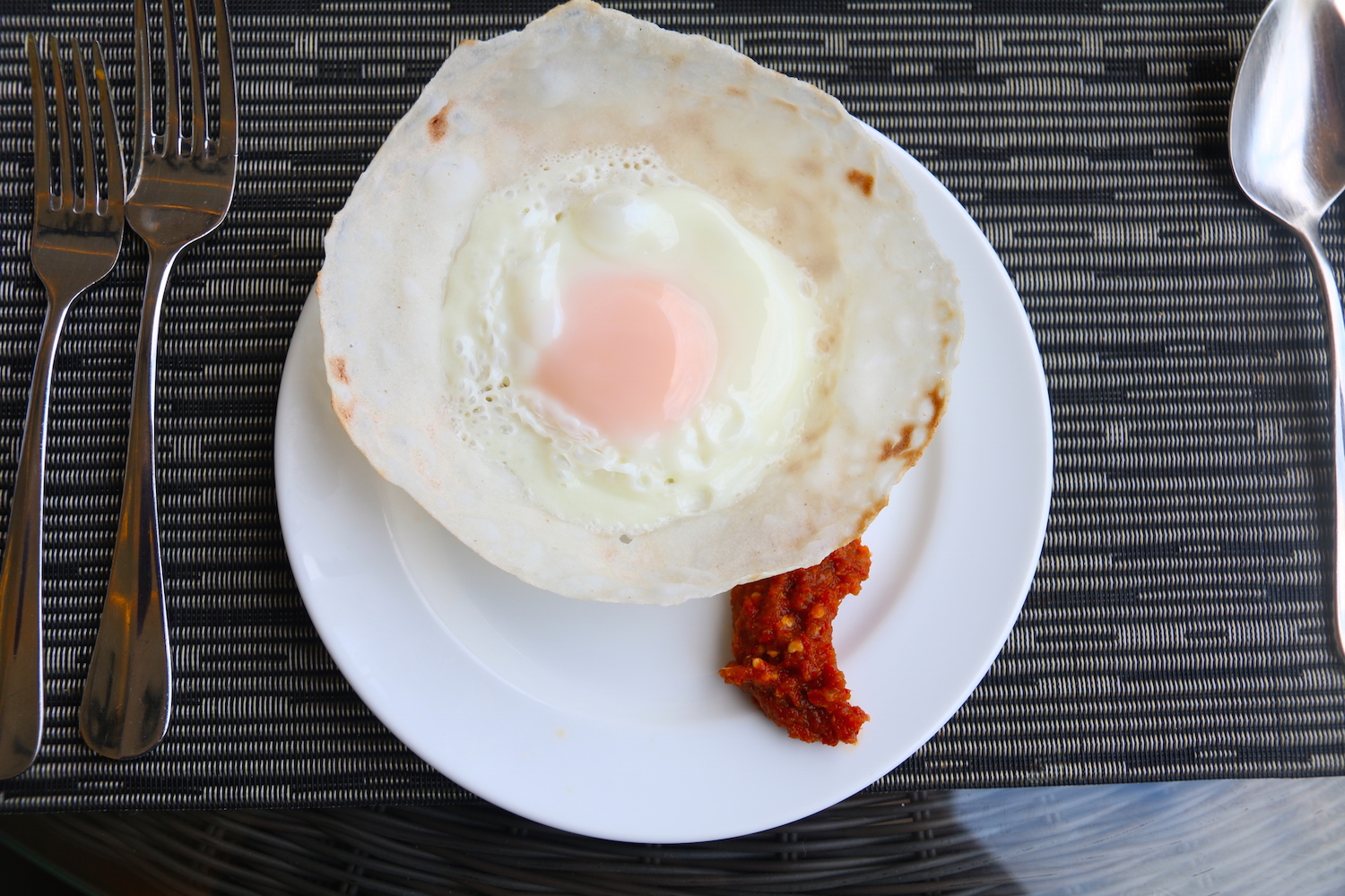 Traditional Sri Lankan egg hopper for breakfast.