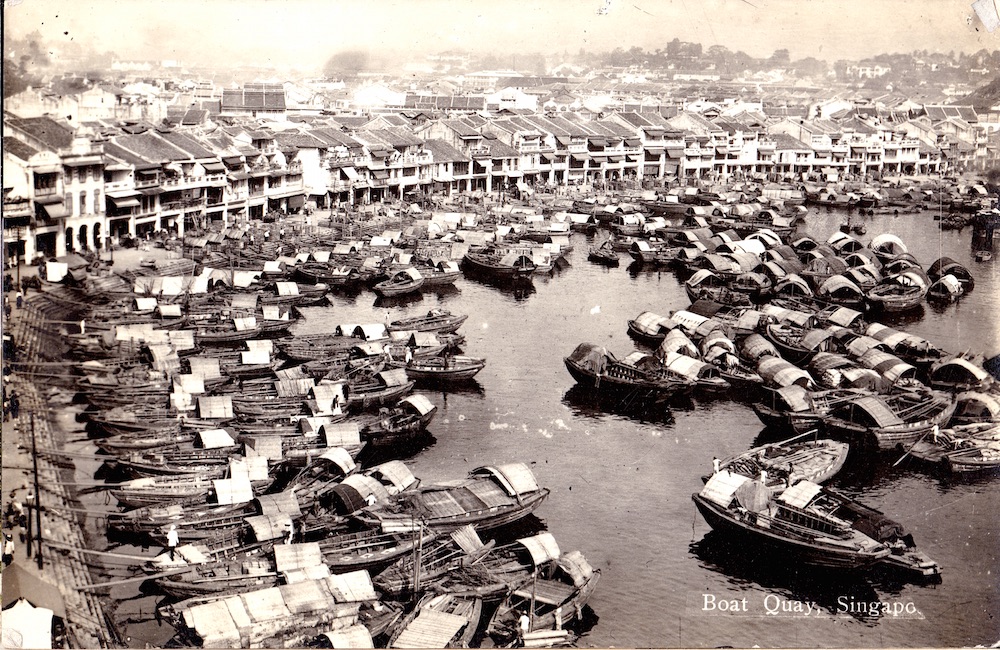 Boat Quay and the bustling Singapore River at the turn of the 1900s.
