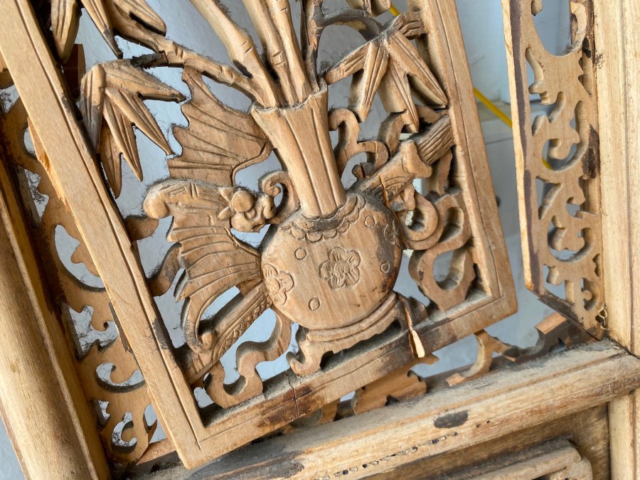 Bats are a sign of good fortune – the Chinese word for Bat is a homonym for fortune (蝠 & 福). I discovered this bat in a broken antique wooden window panel (from a traditional house) I had bought ages ago in Beijing.