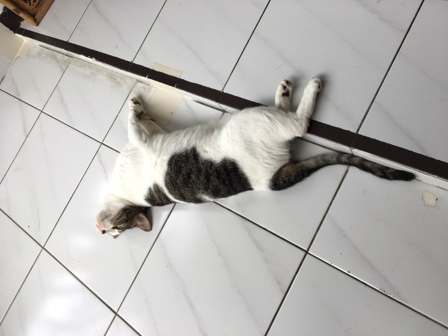 Baby, lying on the cool, white-tiled floor, looking skywards. I really miss him.