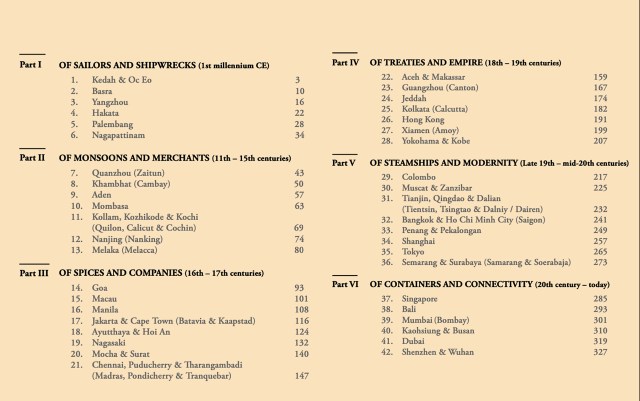 The book takes the reader on a journey through 60 port cities across maritime Asia and the Indian Ocean world. There are 6 sections, 42 chapters and some 300 pages in total. Certain liberties are taken with regards to geography: I include the Swahili Coast because this part of Africa was intricately enmeshed within networks of trade with Asian peoples in the Indian Ocean.